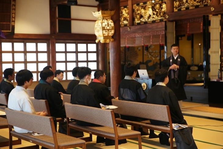2025年9月10日(水)、は宮崎教区若手僧侶の会『若潮会』の皆さんが研修旅行で当山にお見えになりました。