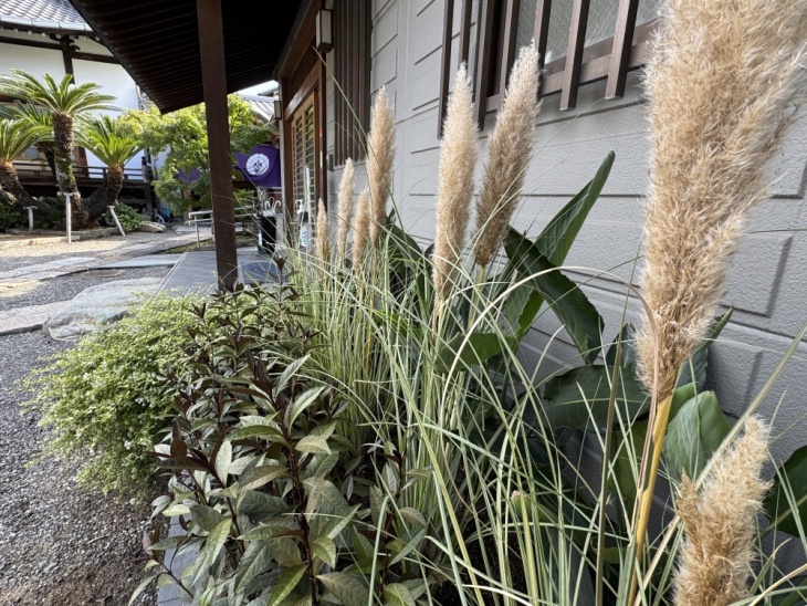 植え替えの季節。 2025/09/18 お寺/日々の活動日記 お彼岸前、今年の夏の暑さで枯れてしまった花壇の植物、植え替え作業。 ストレリチアに、秋らしい斑入りのパンパスグラス。手前にはグリーンとブラウンのコントラストが美しいダークショコラをチョイスして。 グッと秋らしい花壇になりました。