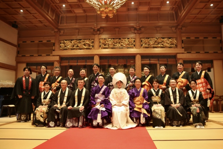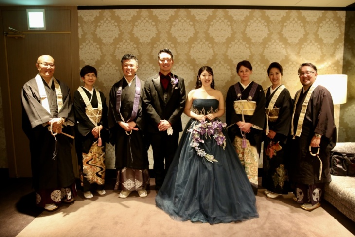 司婚者は、寂静寺ご住職 佐々木龍明師、法要楽は、那珂組白鵠会会員のみなさま、そして新郎新婦にご縁の深い諸先輩方、法友の皆さま。