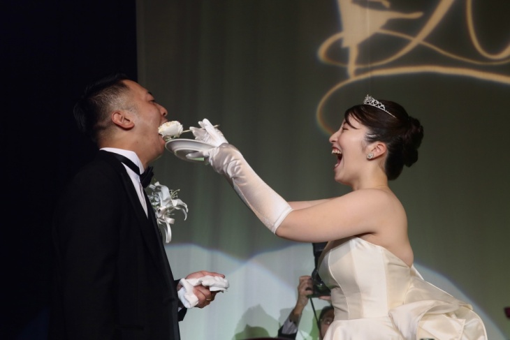本当に幸せそうなふたり。披露宴に少しでも華を添えられて本当によかった。