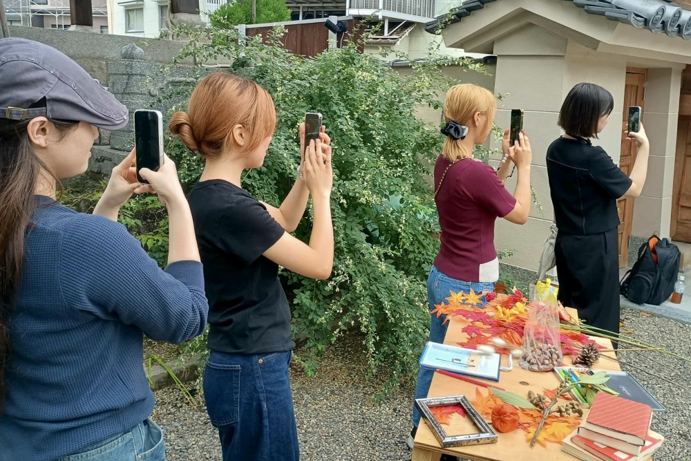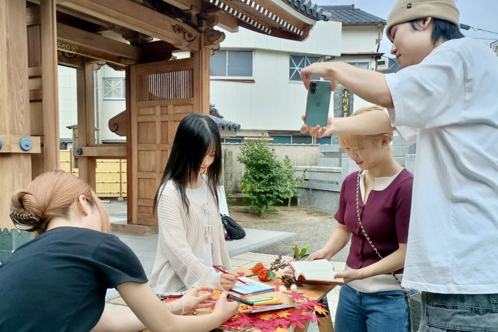 来月11月24日(祝)、西林寺で行う学生主体となった初めてのイベントに向け、素材写真の撮影会。