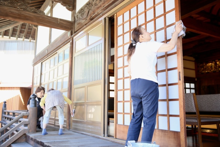 婦人会の皆さんに本堂、会館、ご講師部屋、境内の隅々までお掃除をして下さい。