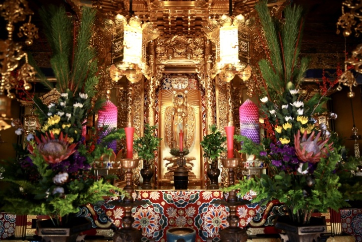 お寺の山門は、いつもと違った雰囲気に。