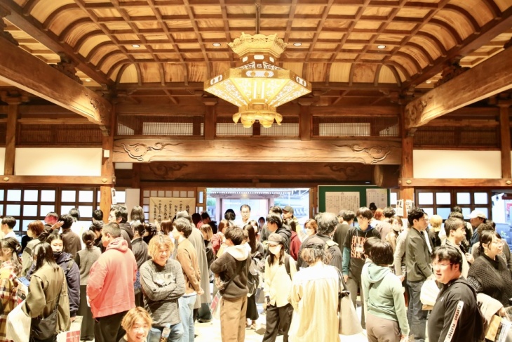 OPENと同時にたくさんの人が押し寄せ、本堂はたちまち人、人、人で溢れかえり、異様な熱気に包まれました。