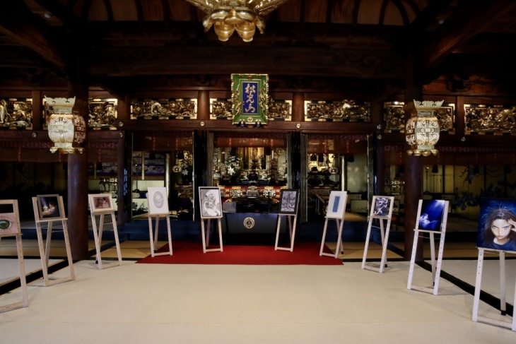 この2ヶ月間、自分自身と向き合いながら描いてくれた『現代社会と救い』の作品が本堂にて一堂に会しました。
