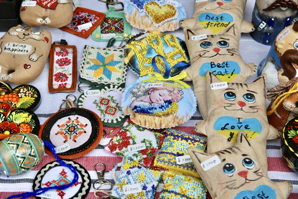 ウクライナの可愛い小物やハンドメイド雑貨が並びました。