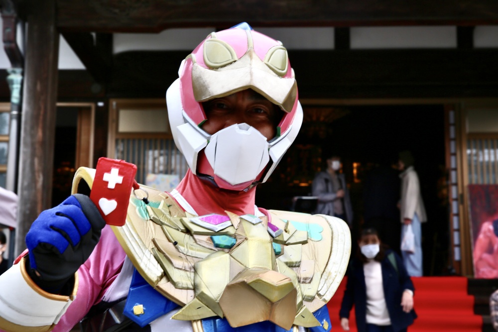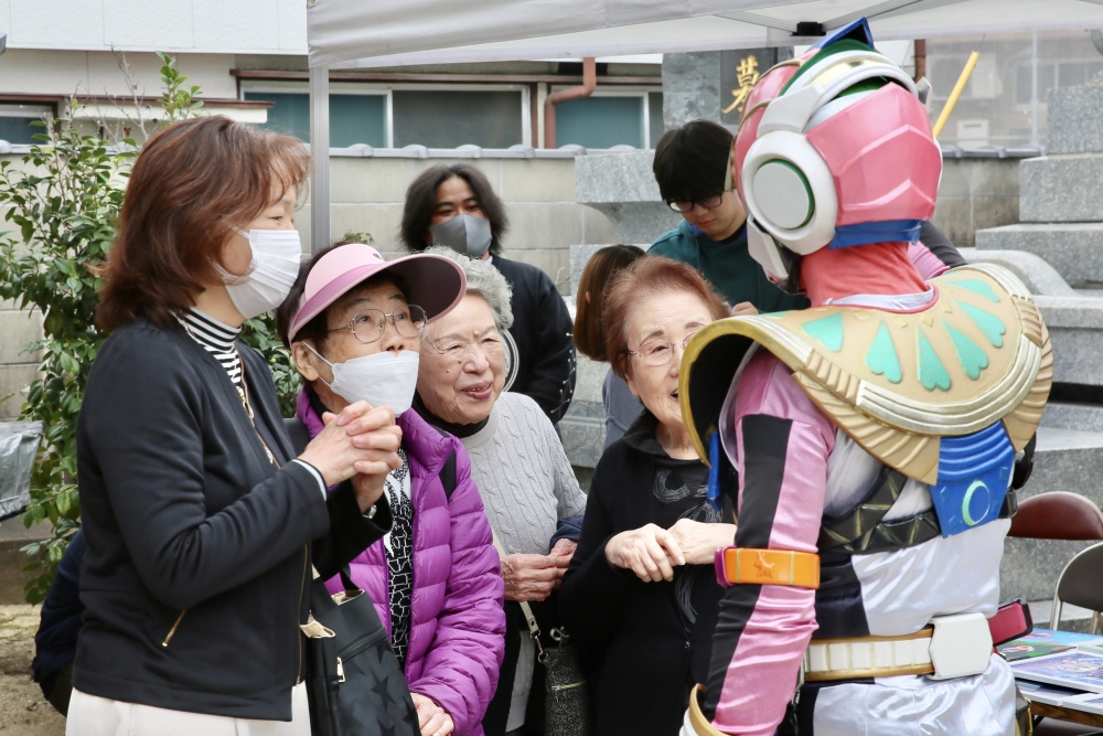吉塚市場で活動していた応援ヒーロー バンバ李αさんも。