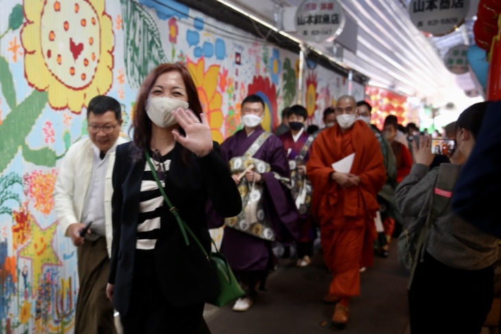 法要終了後は、この日吉塚市場にて開催されるベトナム旧正月イベントとのジョイント企画、皆さんと一緒に吉塚市場内を久々に練り歩きます!