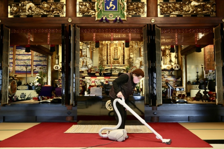 2025年12月26日(金)、お寺の本堂大掃除。