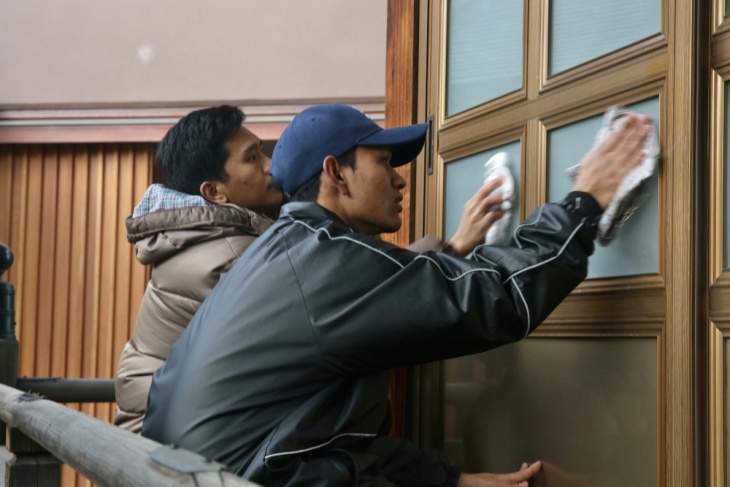 本堂大掃除。