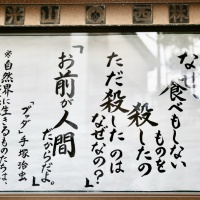 すっかりアップするのを忘れていた先月8月の伝道掲示板。 なぜ、食べもしないものを殺したの。 ただ殺したのはなぜなの? お前が人間だからだよ。 「ブッダ」手塚治虫 ※自然界に生きるものたちは無意味な殺生をしない。