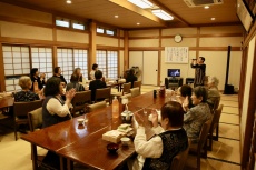 午後1時半より、一緒に『正信偈』をおつとめし、その後ご法話を聞いたり、浄土真宗本願寺派としての仏事・作法に関するお話しや、お経の読み方のお稽古、時には映画を観賞したり外部から講師をお招きし、お話を伺ったりしています。