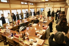 カラオケを歌ったり、踊ったり、ワイワイガヤガヤ。お念仏をよりどころに今年も賑やかに婦人会の新年が始まります。